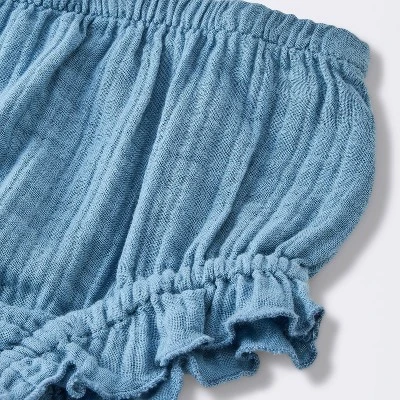 Add cute flair to your baby’s everyday looks with this 2-Piece Embroidered Floral Gauze Top & Bottom Set from Cloud Island™. The two-piece woven outfit set includes a long-sleeve blouse featuring floral detailing on the front and a pleated waist plus matching shorts with elasticized ruffle trim for a coordinated look. The blouse is designed with a back snap closure, and the shorts have a full elastic waistband for a stay-put fit. Made of a mix of cotton-, recycled cotton- and spandex-blend fabric, this gauze outfit set offers your little one all-day breathable comfort.