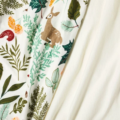 - Includes 1 solid cream and 1 colorful floral-and-fauna-print crib sheet