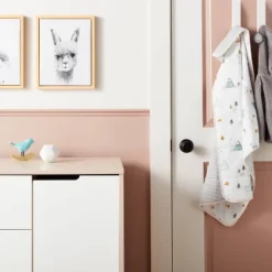 Snuggle up your little one in cute and cozy style with the Jersey-Knit Reversible Baby Blanket Adventures from cloud island™. Made from 100% cotton, this printed baby blanket is soft and gentle on Baby’s delicate skin, while its jersey-knit construction helps keep them warm and comfy from tummy time to cuddle time and more. Decked out in a cute mountain woodland print in soft colors over a light background, this blanket reverses to a striped print in gray and white for a second look, with light-pink knit edging on all sides for a sweet finish. Super soft and cozy, this reversible blanket is great for everyday use, and it’s machine-washable for easy care and cleaning.